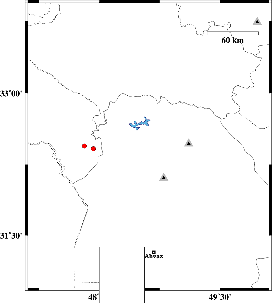 | 2015/06/19 | 22:09:17.0 | 02:39:17.0 | 32.56 | 48.49 | 14 | ML:3 | Khoozestan Province, 17 km North-East of Andimeshk | ||